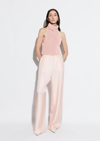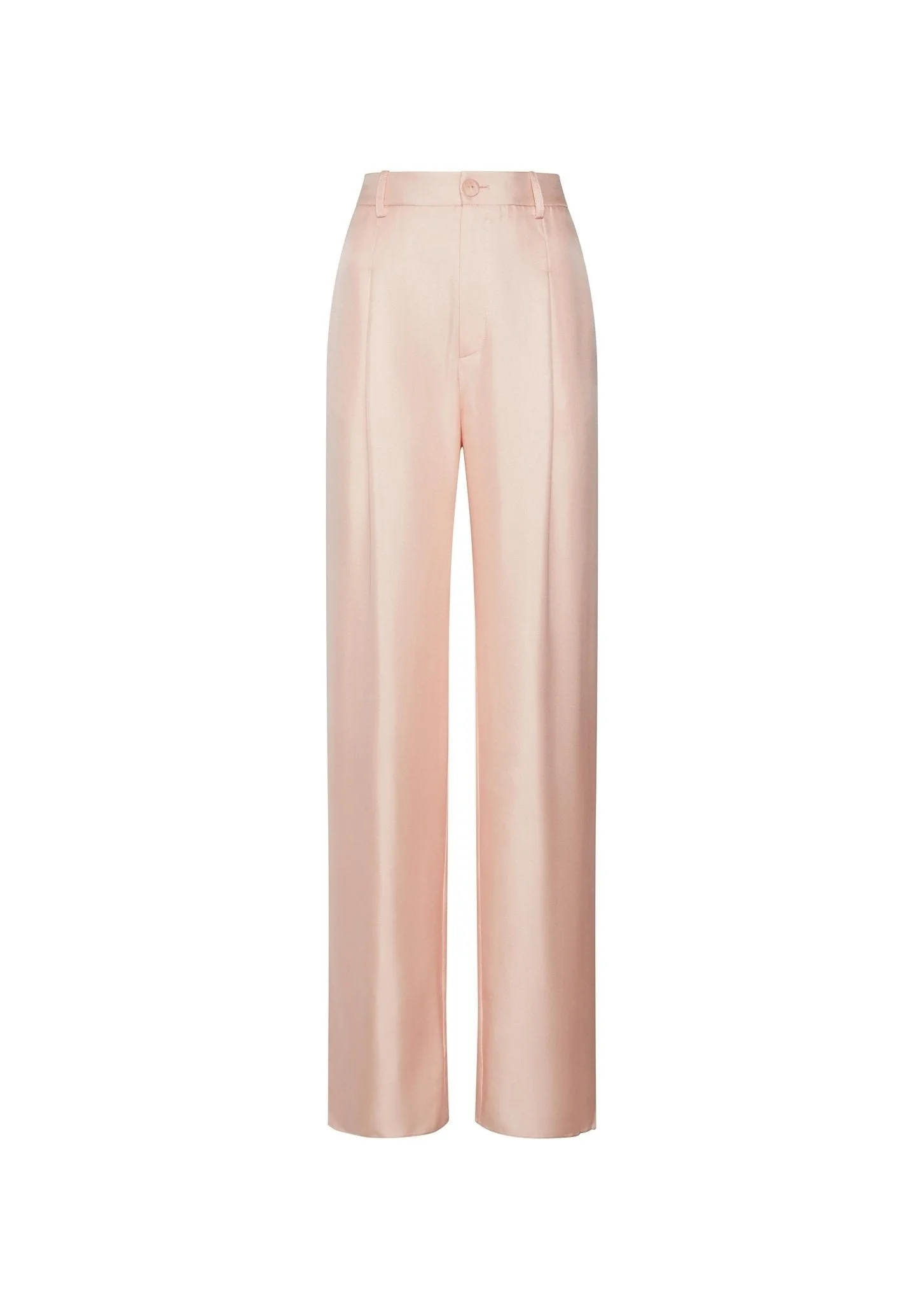- Natural Waist - Relaxed Leg - Floor Length Leg - Back Pockets - Front Zip Closure - Material: 100% Organic Silk - Care: Dry Clean Only - Country of Origin: USA