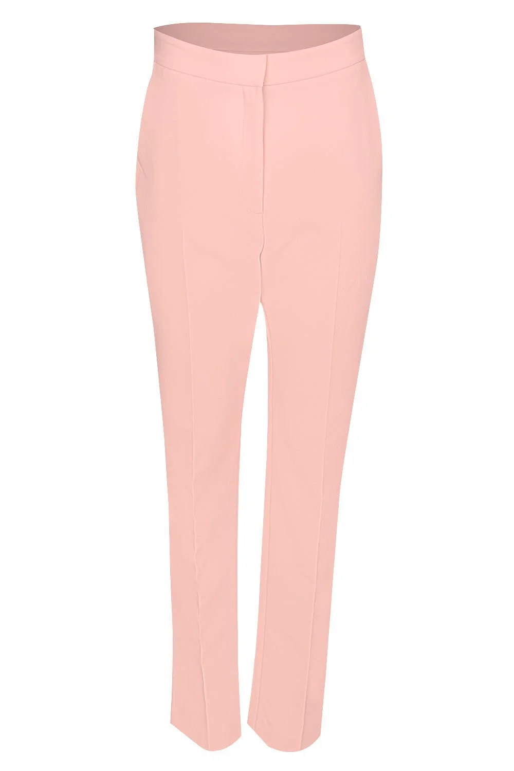 DETAILS AND INSIGHT Lapointe slim leg trouser in light pink. 90% Polyester, 10% Elastane Hand Wash Made in USA Style R4247135OMK - 686