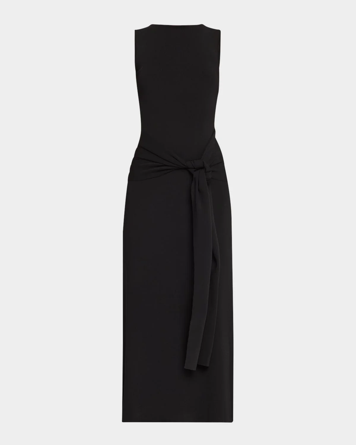 Waist-Tie Sleeveless Matte Viscose Midi Dress