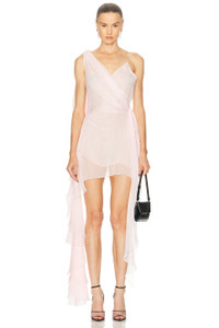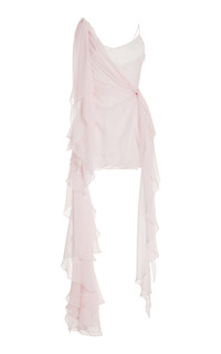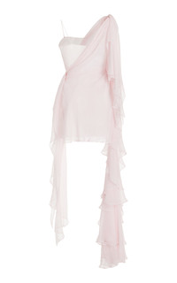 Asymmetric Ruffled Silk Mini Dress light pink