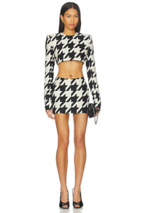 - Self: 65% virgin wool 35% polyester Lining: 100% polyester - Made in USA - Dry clean - Fully lined - Hidden back zipper closure - Midweight woven textile - Skirt measures approx 13" in length - Revolve Style No. LAQH-WQ27 - Manufacturer Style No. LSFW25S-006