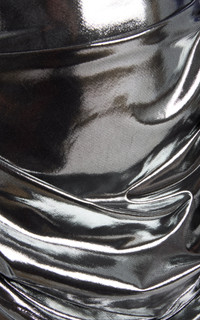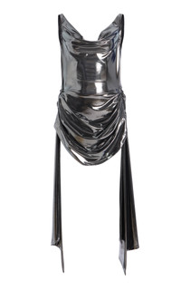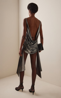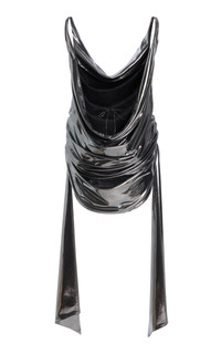 PRODUCT DETAILS - Slim fit, scoop neckline with petite straps, ruched detailing by the waist, with backless cut out, sheath silhouette - Pull Over - Lined - Composition: 93% Polyester 7% Elastane - Color: silver - Dry Clean Only - Fall-Winter '25