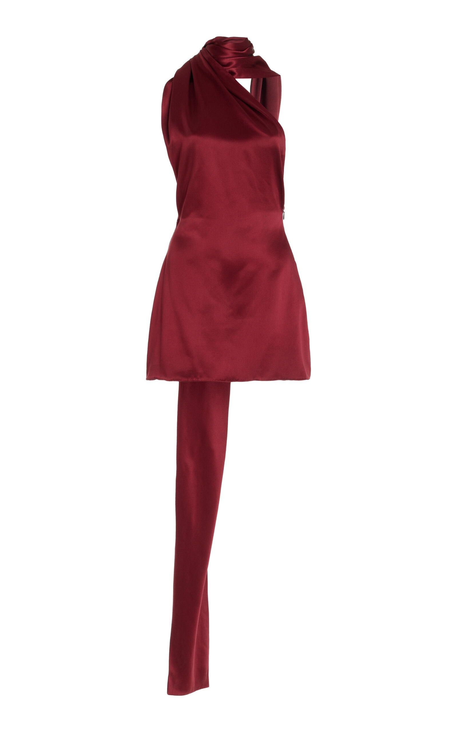 The Queens born-and-bred talent is one of the hottest names of the moment—and with hyper sexy-with-an-edge designs to match (worn by J.Lo, Kim Kardashian, and Megan Thee Stallion to name but a few). His forte? Striking (and often skin-baring) pieces that empower with an edgy, statuesque glamour. Cut from lustrous silk, this one-shoulder mini dress features a slinky, draped silhouette enhanced with a self-wrap scarf detail. PRODUCT DETAILS - Fall/Winter '24 - Concealed zip fastening along side - Composition: 100% Silk - Designer color: Oxblood - Dry clean only - Made in the USA SIZE & FIT - Our model is wearing a size Small - Model is 5'10" with a 30" bust, 24" waist, and 34" hip - Designed for a slim fit