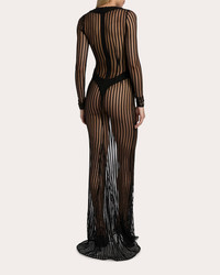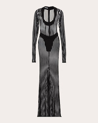 Playing with transparencies, this LaQuan Smith gown makes a bold statement with its sheer striped design. The lined scoop neck and built-in panty create strategically placed opacity. Designer color: black Back-zip closure Scooped neckline Sheer stripes 80% viscose, 17% polyamide, 3% elastane Dry clean only Made in the USA Size & Fit Fits true to size Please note, below measurements reflect LaQuan Smith's size chart, not the actual garment. Size XS (US 0-2): 31-33in chest, 22-23in waist, 32-33in hips Size S (US 4-6): 34-34in chest, 25-26in waist, 35-36in hips Size M (US 8-10): 36-38in chest, 27-29in waist, 38-40in hips Size L (12-14): 41-42in chest, 30-32in waist, 43-44in hips Size XL (US 16-18): 44-46in chest, 32-34in waist, 46-48in hips