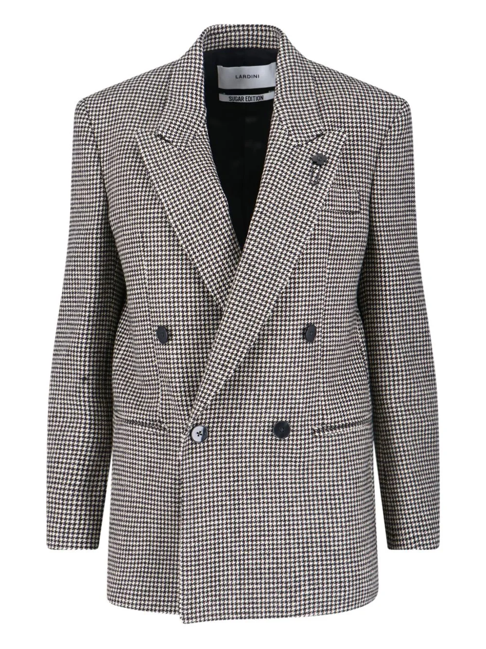 houndstooth-pattern double-breasted blazer Highlights - Black/white - Houndstooth pattern - Double-breasted - Button fastening - Lapel pin - Flap pockets Made in Italy Composition Wool 57%, Polyester 30%, Polyamide 11%, Elastane 2% Washing instructions Read Manufacturer Guidelines