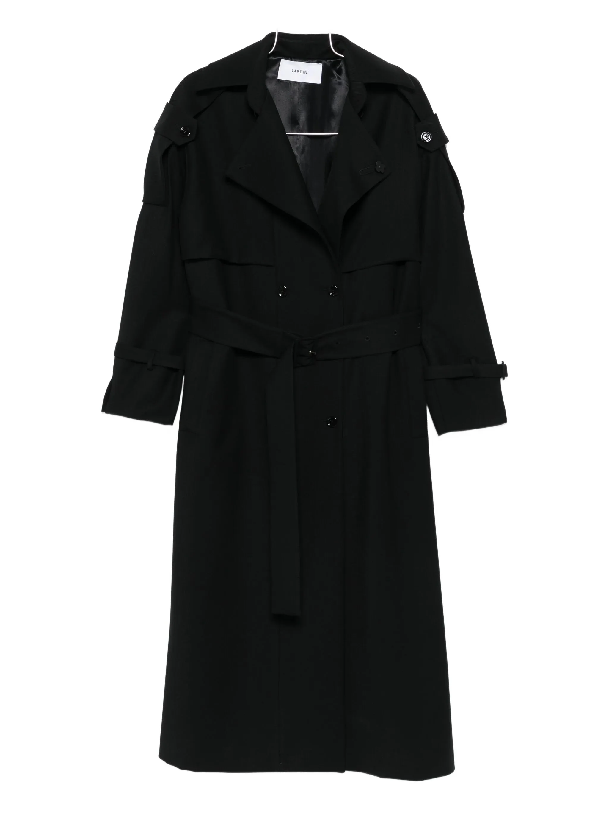black double-breasted button fastening belted waist epaulettes storm flap - Color: BLACK - Made in: Bangladesh - Designer Style ID: A6FUNBOY AAIF65426 999 Composition and care Virgin Wool: 100.0%