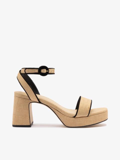 Equal parts party and chic, this leg-lengthening platform is ready for anything. With a comfortable platform base and a lower block heel, the Dolly in soft raffia and broderie is a foolproof option day or night. - Beige - Raffia fabric - Open round toe - Golden hardware - Adjustable ankle strap - 3 inch block heel - 2.5 inch platform - Finely crafted leather sole for support, durability, and comfort - Insole with memory foam cushion and hot stamp logo - Peel off the protector before using your shoe - Handmade in Brazil