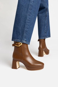 Adding to our curation of must-have boots, our newest Dolly Verona silhouette is a reimagining of our favorite (and bestselling) heel, now with additional design details and a more manageable, lower heel. In a versatile brown leather, these are the ones that you'll be tempted to wear all year long—who could blame you? - Burnt umber - Luster calf leather - Closed round toe - Golden hardware - 3 inches block heel - 1 inch platform - Finely crafted leather sole for support, durability, and comfort - Peel off the protector before using your shoe - Insole with memory foam cushion and hot stamp logo - Handmade in Brazil - SKU: L504-DOLL-BURN-2263