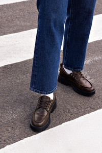 Not your average loafer – London brings boldness to the classics. With exposed stitching and a chunky lug sole, this lace-up style mixes timeless elegance with downtown edge. Wear it with fun socks or contrast it with feminine pieces for an effortless hi-lo vibe. - Brown - Napa antique leather - Closed round toe - Lace-up closure - 2 inches block heel - 1 inch platform - Perfectly fitted rubber lug sole for support, durability, and comfort - Insole with memory foam cushion and hot stamp logo - Handmade in Brazil - SKU: L469-LOND-BROW-2303