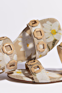 We never saw metal hardware we didn't love and the new Milan flat sandal is no exception. With an iconic Italian look and feel, chunky chain detail embellishes the straps of this classic raffia sandal in the season's new Lotus print. - Beige - Raffia fabric - 0.4 inch heel - Finely crafted leather sole for support, durability, and comfort - Insole with memory foam cushion and hot stamp logo - Peel off the protector before using your shoe - Handmade in Brazil