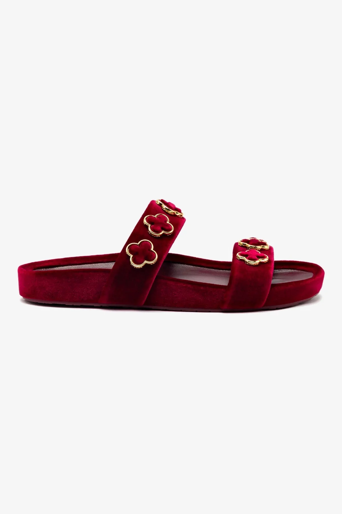 With seasonal appeal, these Milan slides boast an allover velvet design that keeps them cozy and soft. Easy to slide in and out of no matter where you're going, this top selling style will always have a place in our closets. - Pale rubi - Velvet stretch fabric - Open round toe - Golden embellishment detail - Perfectly fitted rubber sole for support, durability, and comfort - Insole with memory foam cushion and hot stamp logo - Handmade in Brazil