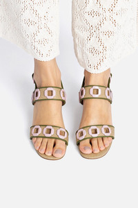 The Milan Sandal returns in a refreshed version of a Larroude best-seller. Raffia straps with statement buckles add character to the design, while the block heel ensures comfort and stability for everyday wear. Pair it with airy dresses, linen sets, or relaxed tailoring for an effortless, modern look. - Beige and seaweed - Raffia and calf skin leather upper - Kid skin leather lining - Open round toe - Adjustable strap - Pink hardware - 45 mm (1.8 in) heel - Finely crafted leather sole for support, durability, and comfort - Insole with Larroude Cloud memory foam cushion and hot stamp logo - Peel off the protector before using your shoe - Handmade in Brazil - SKU: L144-MILA-BEIG-2645