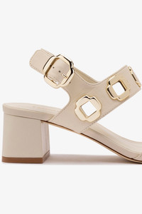 We never saw metal hardware we didn't love and the new Milan sandal is no exception. With a iconic Italian look and feel, chunky chain detail embellishes the straps of this classic cream leather sandal with the most durable—and comfortable—block heel for all day (and night) wear. - Ivory - Kid Skin Leather - Adjustable ankle straps - 1.8 inch block heel - Finely crafted leather sole for support, durability, and comfort - Insole with memory foam cushion and hot stamp logo - Peel off the protector before using your shoe - Handmade in Brazil