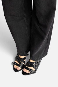 The Patti mule was built for a look that demands attitude and presence. Crafted in black leather, it combines a commanding stiletto heel with a structural wide strap design. Its charm lies in the silver buckles, which add a statement, rocker touch to this high-impact silhouette. Pair it with a silk mini slip dress and an oversized coat for a chic night-out look, or wear it with leather trousers and a black shirt for a refined, edgy outfit. - Black - Calf skin leather upper - Kid skin leather lining - Open round toe - Adjustable strap - Silver hardware - 65 mm (2.6 in) heel - Finely crafted leather sole for support, durability, and comfort - Peel off the protector before using your shoe - Insole with Larroude Cloud memory foam cushion and hot stamp logo - Handmade in Brazil - SKU: L578-PATT-BLAC-2568