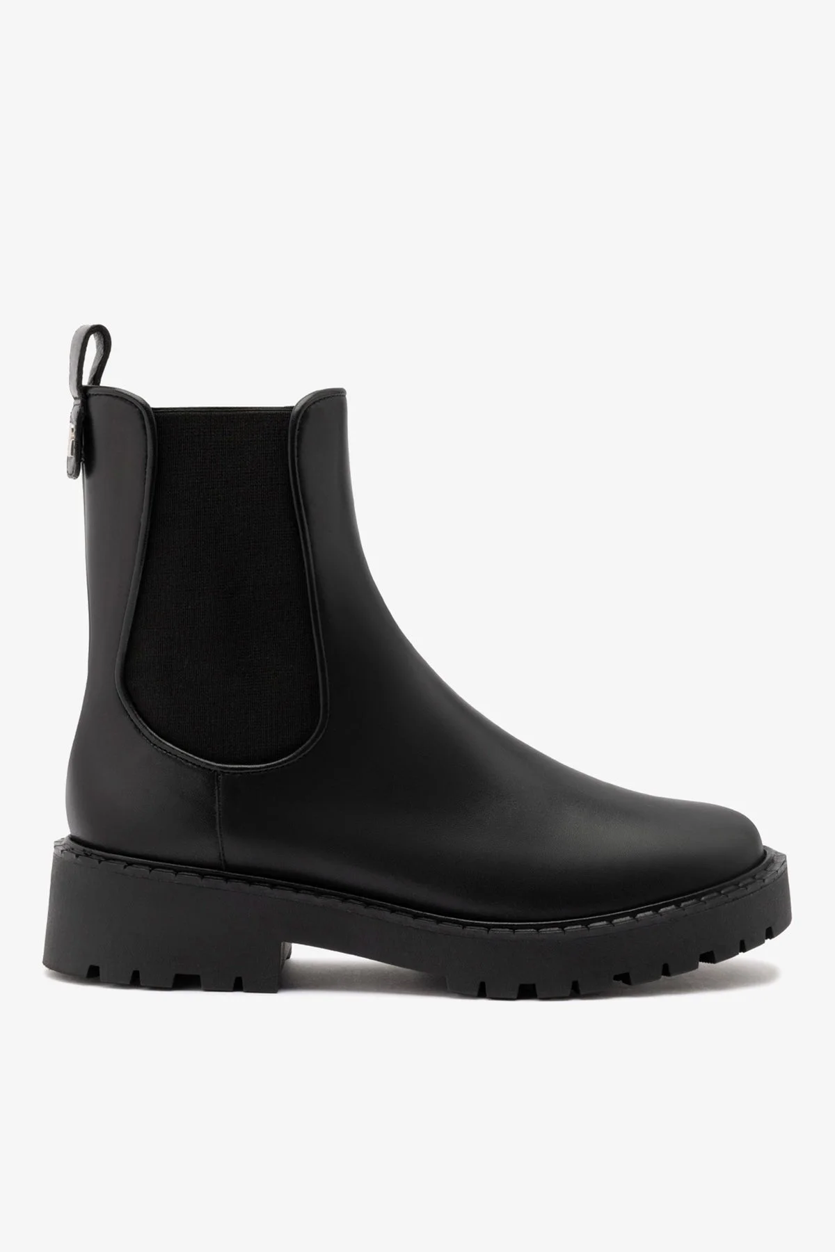 This pull-on bootie pairs minimalist design with maximum impact. Grounded by a chunky lug sole, it features elasticized side panels for a flexible, slip-on fit. No laces, no fuss—just bold style. - Black - Napa deluxe round toe - 2 inch block heel - 1 inch platform - Perfectly fitted rubber lug sole for support, durability, and comfort - Insole with memory foam cushion and hot stamp logo - Handmade in Brazil