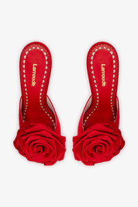 Love is in the air... and in our feet. As part of Larroude’s Valentine’s Day capsule collection, the Scarlet mule reimagines romance through a bold, contemporary lens. Featuring a sculptural floral detail and a vibrant finish, this design turns a classic mule into a striking statement piece. Style it with minimalist dresses, evening tailoring, or monochrome outfits to let the floral detail take center stage. - Cherry - Satin royale upper - Kid skin leather lining - Open round toe - Non-removable ornament - 95 mm (3.8 in) heel - Finely crafted leather sole for support, durability, and comfort - Peel off the protector before using your shoe - Insole with Larroude Cloud memory foam cushion and hot stamp logo - Handmade in Brazil - SKU: L458-SCAR-CHER-2538