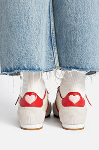 Love is in the air... and in our feet. As part of Larroude’s Valentine’s Day capsule collection, our best-selling Stella sneaker is proof that comfort and style can coexist—and stand out. Now in a super romantic ivory version with scarlet accents, it brings a modern edge to any look, from city strolls to weekend getaways. Try it with tailored pants or a knit set for an effortlessly cool contrast. - Ivory, mushroom grey and scarlet - Heavy suede leather and napa leather upper - Kid skin leather lining - Round toe - Lace-up closure - Features 2 sets of laces - Perfectly fitted rubber sole for support, durability, and comfort - Insole with Larroude Cloud memory foam cushion and hot stamp logo - Handmade in Brazil - SKU: L415-STEL-IVOR-2541