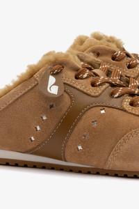 Meet the coziest take on our Stella sneaker. The Stella mule blends sporty design with laid-back comfort, featuring a peanut suede upper, russet leather accents, and plush natural shearling lining. Effortlessly cool and easy to slip on, it pairs perfectly with relaxed denim, knit sets, or oversized sweaters – made for stylish slow days. For the perfect fit, we recommend selecting half size up due to the plush shearling lining. - Peanut and russet - Heavy suede leather, napa leather and shearling - Closed round toe - Lace-up closure - Features 2 sets of laces - Perfectly fitted rubber sole for support, durability, and comfort - Insole with memory foam cushion and hot stamp logo - Handmade in Brazil - SKU: L415-STEL-PEAN-2286