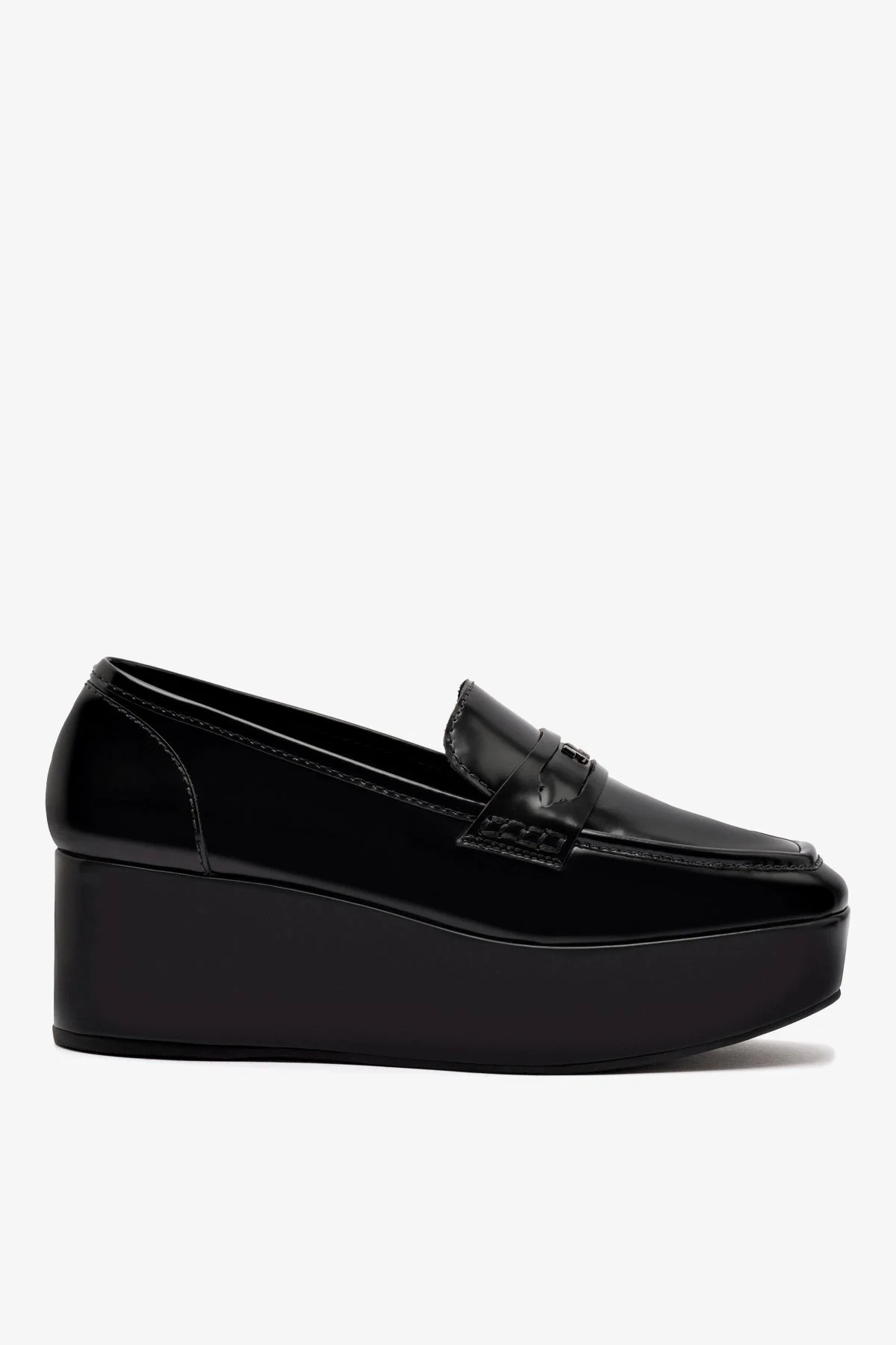 A modern classic with a lift. Our Suki flatform loafer blends timeless tailoring with a bold, elevated sole. Sleek and structured in a black glossy box leather, it's your go-to for leveling up any look. - Black - Glossy box leather - Closed round toe - Larroude "L" logo in silver hardware - 2.4 inches flatform heel - Perfectly fitted rubber sole for support, durability, and comfort - Insole with memory foam cushion and hot stamp logo - Handmade in Brazil - SKU: L416-SUKI-BLAC-2247