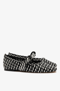 A fresh take on a Larroude favorite, the Verona Macrame brings texture and contrast to our classic ballet flat, handcrafted in a graphic black-and-white weave that feels modern, effortless, and full of character. Finished with our iconic heart-shaped buckle, it’s the kind of flat that stands out while staying easy to wear. Style it with crisp tailoring, denim sets, or breezy dresses to add interest to everyday looks without trying too hard. - Black and white - Calf skin leather upper - Kid skin leather lining - Round toe - Adjustable strap - Tonal hardware - Finely crafted leather sole for support, durability, and comfort - Peel off the protector before using your shoe - Insole with Larroude Cloud memory foam cushion and hot - stamp logo - Handmade in Brazil - SKU: L219-VERO-BLAC-2583