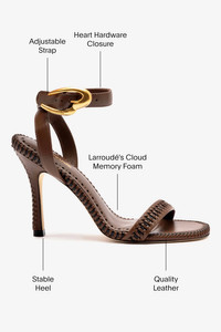 One of the newest members of the Verona family, this sandal features the subtle design details that set them apart. Stitched brown leather wraps around the shoe and snakes down the heel, leaving a lasting impression. - Burnt umber - Kid skin leather - Open round toe - 3.8 inch stiletto heel - Golden hardware - Finely crafted leather sole for support, durability, and comfort - Insole with memory foam cushion and hot stamp logo - Peel off the protector before using your shoe - Handmade in Brazil