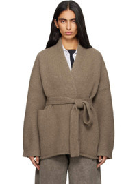 Brushed knit alpaca-blend cardigan. · Hand-loomed · Wrap construction · Shawl collar · Open front · Detachable self-tie belt at waist · Welt pocket · Rolled edge at hem · Dropped shoulders Supplier color: Tobacco 93% alpaca, 7% polyamide. Made in Peru 252874F095007