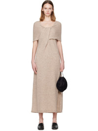 Brushed knit suri alpaca-blend maxi dress. · Off-the-shoulder construction · Knotted detailing and gathering at chest · Rolled edge at hem Supplier color: Husk 38% suri alpaca, 38% baby alpaca, 24% polyamide. Made in Peru 252874F055002