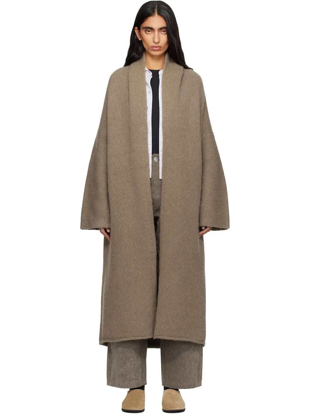 Brushed knit alpaca-blend cardigan. · Hand-loomed · Shawl lapel · Open front · Welt pockets at front · Dropped shoulders Supplier color: Tobacco 93% alpaca, 7% polyamide. Made in Peru 252874F095010