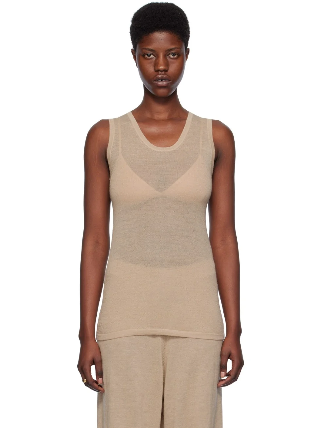 Knit super baby alpaca tank top. Rib knit scoop neck, hem, and armscyes. Supplier color: Antique 100% super baby alpaca. Made in Peru 241874F111002