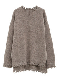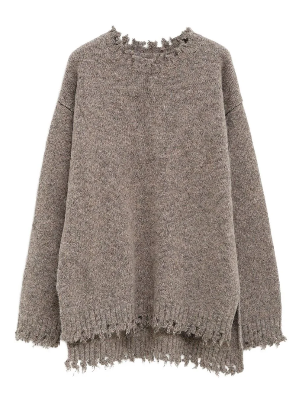 frayed-edge sweater Highlights - Brown - Frayed edges - Round neck - Long sleeves Imported Composition Alpaca Wool 43%, Merino 42%, Polyamide 15% Washing instructions Read Manufacturer Guidelines