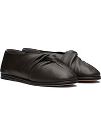 Grained leather ballerina flats. · Twisted detailing at vamp · Buffed leather lining · Leather sole with rubber injection Supplier color: Coal Upper: leather. Sole: leather, rubber. Made in Peru 252874F118000