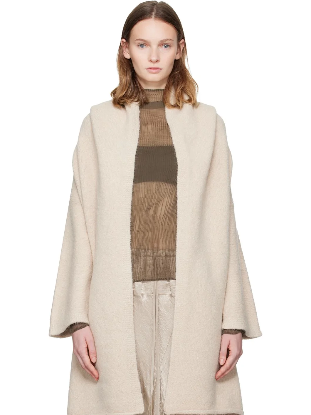 Felted knit alpaca-blend coat. · Hand-loomed · Hood at shawl collar · Open front · Welt pockets at waist · Rolled edge at hem · Dropped shoulders · Rib-knit cuffs Part of the LM Essential collection. Supplier color: Antique melange 93% alpaca, 7% polyamide. Made in Peru 252874F059008