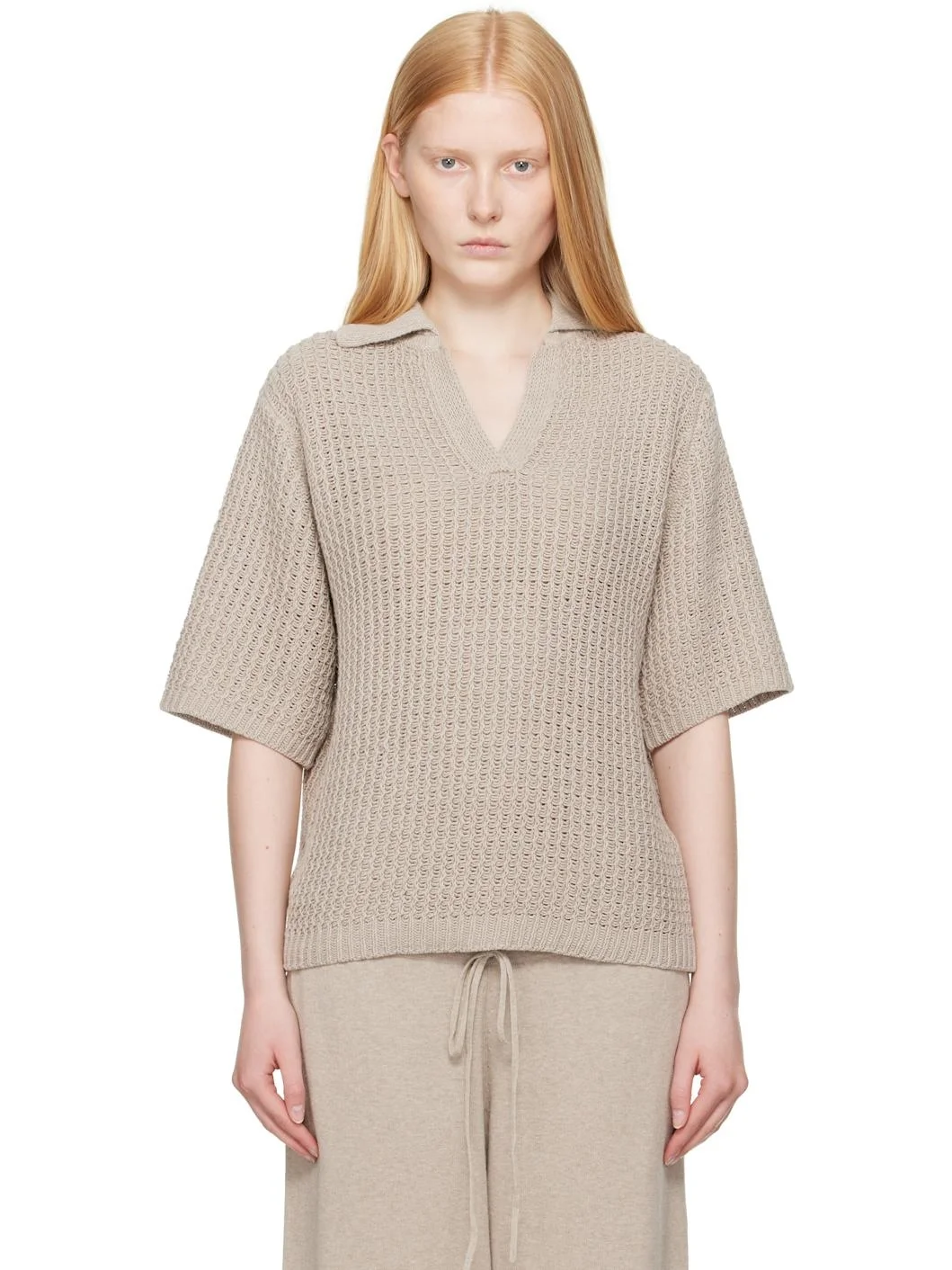 Hand-loomed pima cotton- and linen-blend polo. · Rib-knit open spread collar, hem, and cuffs · Dropped shoulders Supplier color: Sisal 70% pima cotton, 30% linen. Made in Peru 252874F108002