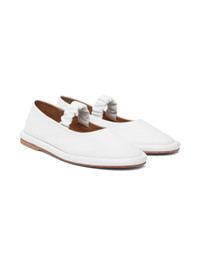 Handcrafted grained leather ballerina flats in white. · Ruched elasticized strap at vamp · Grained leather lining · Covered midsole · Crepe rubber heel · Leather sole Supplier color: White Upper: leather. Sole: leather, rubber. Made in Peru 242874F118001