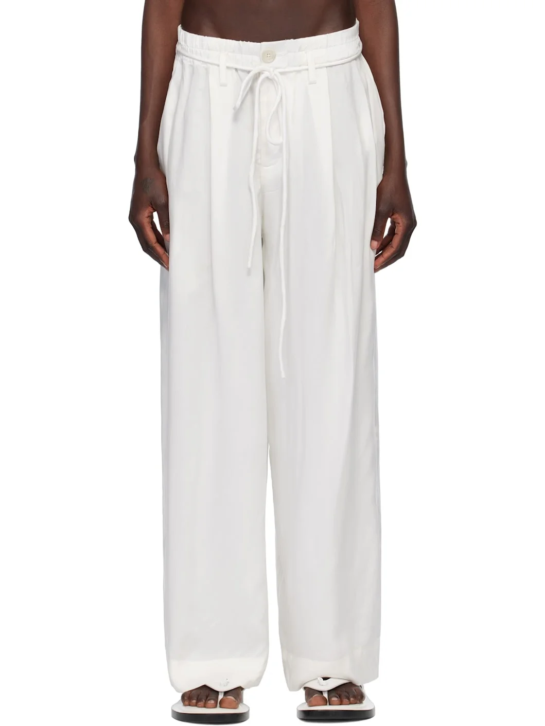 Cupro twill trousers. · Drawstring at elasticized waistband · Belt loops · Two-pocket styling · Zip fly · Pleats at front Supplier color: White 100% cupro. Made in Peru 252874F087000