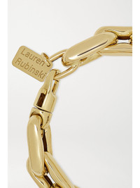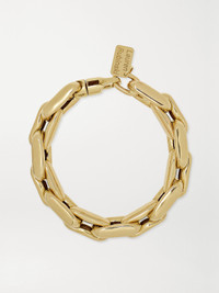 Lauren Rubinski only launched her eponymous line earlier this year, but her chunky chain jewellery has already been spotted on the likes of Kate Moss and Hailey Bieber. This bracelet is made of 14-karat gold curb links that interconnect in multiple layers - each one is hollow, so it won't feel too heavy on your wrist. Shown here with: [Bottega Veneta Top id1206496], [Bottega Veneta Pants id1206486], [Lauren Rubinski Necklace id1237636], [Lauren Rubinski Bracelet id1237631], [Lauren Rubinski Bracelet id1237633], [Lauren Rubinski Bracelet id1237632], [Lauren Rubinski Necklace id1237628].