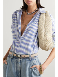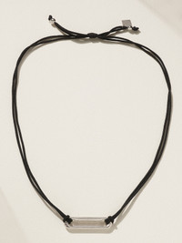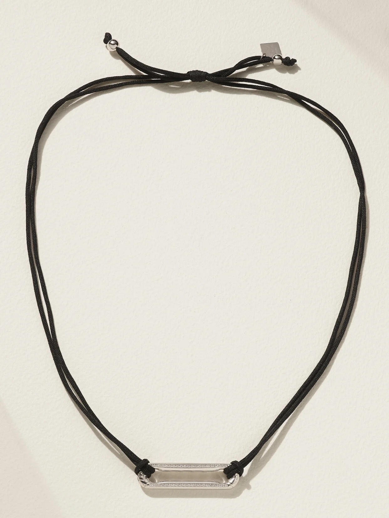 Lauren Rubinksi's minimal necklace is ideal for stacking. Crafted in Italy, the adjustable cord is strung with a single white gold chain link that sparkles with tiny diamonds and knotted to hold the pendant in place.
