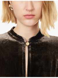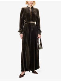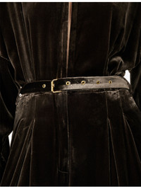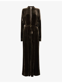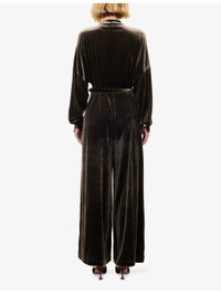 PRODUCT DETAILS - Le Kasha velvet jumpsuit - 82% viscose, 18% silk - Concealed hook-and-eye and zip-fly fastening at front - Relaxed fit, mao collar, long sleeves, buttoned cuffs, two side slip pockets, belt loops, detachable and adjustable belt, branded gold-toned hardware, wide leg - Dry clean only - Made in France - True to size - Size small: length 60in / 152cm, rise 31in / 79cm, leg opening 34in / 86cm - Model is 5ft 10in/1.78m and wears a size small - Midweight, non-stretch Ref: R04565897