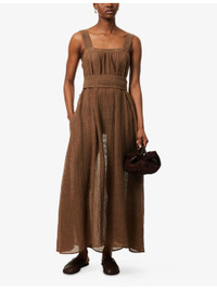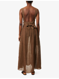 PRODUCT DETAILS - Le Kasha linen midi dress - 100% linen - Self-tie fastening at back - Open cut back, square neck, sleeveless, adjustable back tie, all-over crinkle effect - Hand wash - Made in France - True to size - Size small: length 54.3in / 138cm - Model is 5ft 10in/1.78m and wears a size small - Lightweight, non-stretch Ref: R04464194