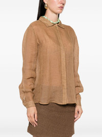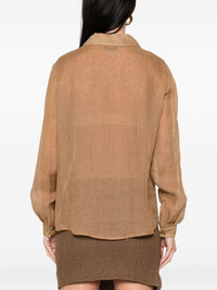button-down linen shirt Highlights - Sand - Long sleeves - Collared neck - Button fastening - Sheer fabric - Straight hemline Made in France Composition Linen/Flax 100% SIZE & FIT Model measurements Height 5 ft 9 in(1.76 m) Bust/Chest 32.28 in(82 cm) Hips 35.43 in(90 cm) Waist 25.19 in(64 cm) Washing instructions Machine Wash