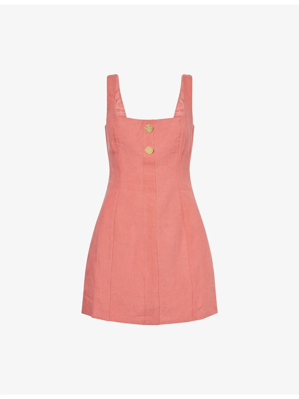 PRODUCT DETAILS - Le Kasha linen mini dress - 100% linen - Concealed zip fastening at back - Slim fit, square neck, shoulder straps, engraved buttons embellishment at front, darts at front and back - Machine wash at 30°C - Made in France - True to size - Size small: length 31in / 80cm - Model is 5ft 10in/1.78m and wears a size small - Lightweight, slight stretch Ref: R04464196