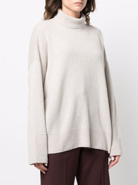 fine-knit roll-neck jumper light beige organic cashmere fine knit roll neck long sleeves relaxed fit straight hem ribbed-knit edge Imported Composition Organic Cashmere 100% SIZE & FIT Model measurements Height 5 ft 9 in(1.75 m) Bust/Chest 32.67 in(83 cm) Hips 36.22 in(92 cm) Waist 24.8 in(63 cm) Measurement BUST 59.05 in(150 cm) Shoulder Width 23.62 in(60 cm) SLEEVE LENGTH 25.59 in(65 cm) WAIST 59.05 in(150 cm) FittingInformation This is a one size item Cut for a loose fit Made with a mid-weight fabric