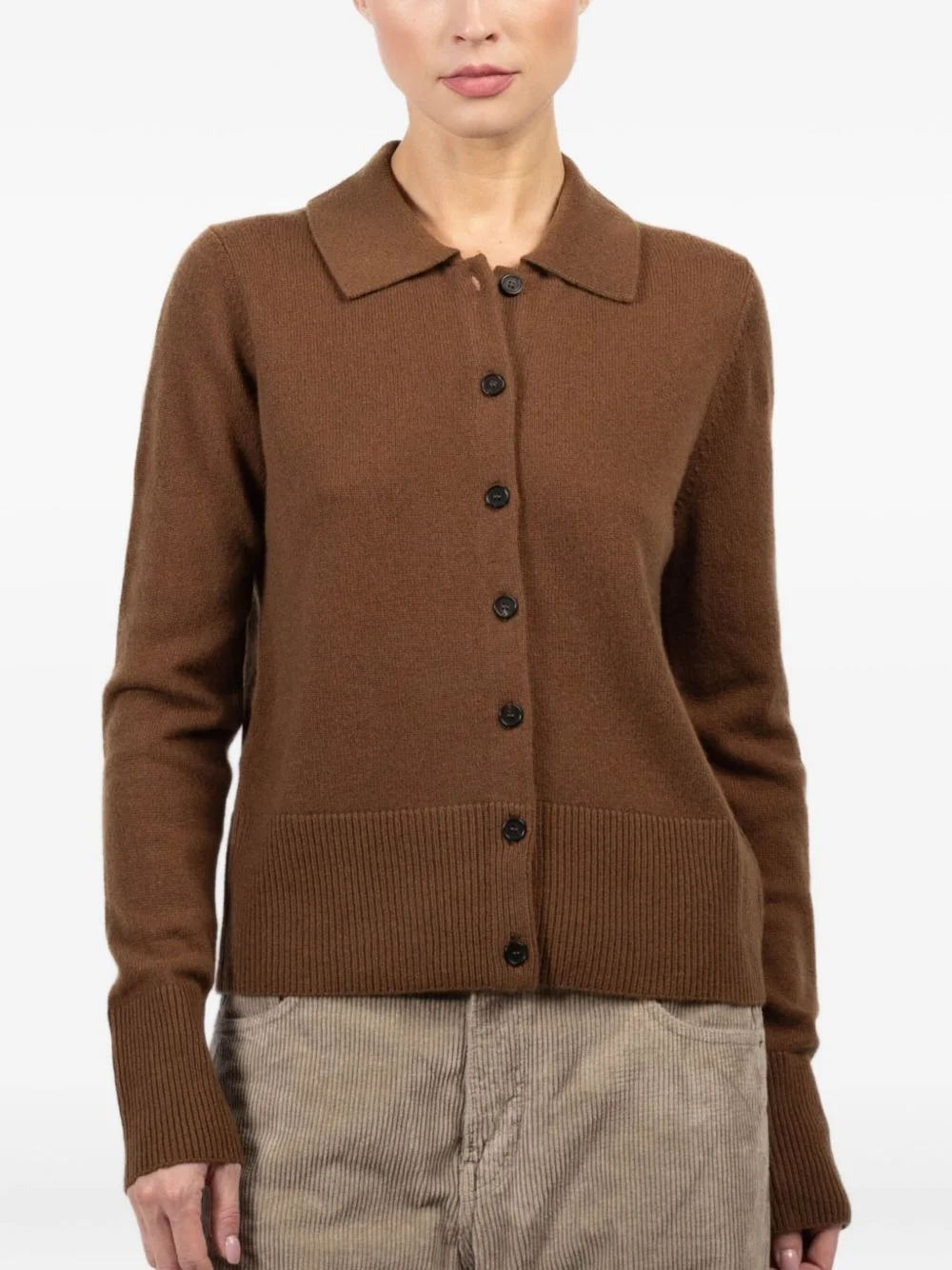 buttoned polo-neck cardigan Highlights - Brown - Polo neck - Button fastening - Ribbed hem - Long sleeves - Ribbed cuffs Imported Composition Cashmere 100% Washing instructions Read Manufacturer Guidelines