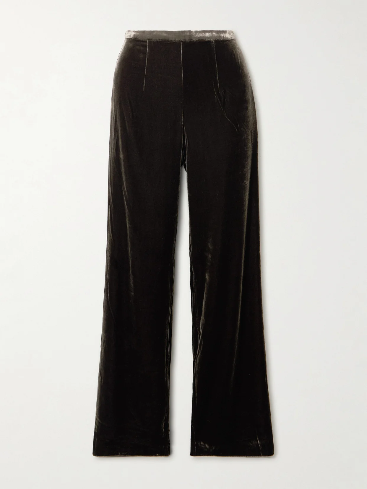 Designed and made in Paris, Le Kasha's pants are cut from plush velvet, catching the light beautifully. They sit high on the waist and flare out to wide hems.