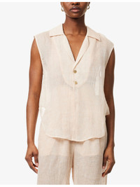 PRODUCT DETAILS - Le Kasha linen shirt - 100% linen - Exposed button fastening at front - Relaxed fit, notched collar, sleeveless, dropped armholes, dipped hem - Hand wash - Made in France - True to size - Size small: length 25in / 64cm - Model is 5ft 10in/1.78m and wears a size small - Lightweight, non-stretch Ref: R04464207