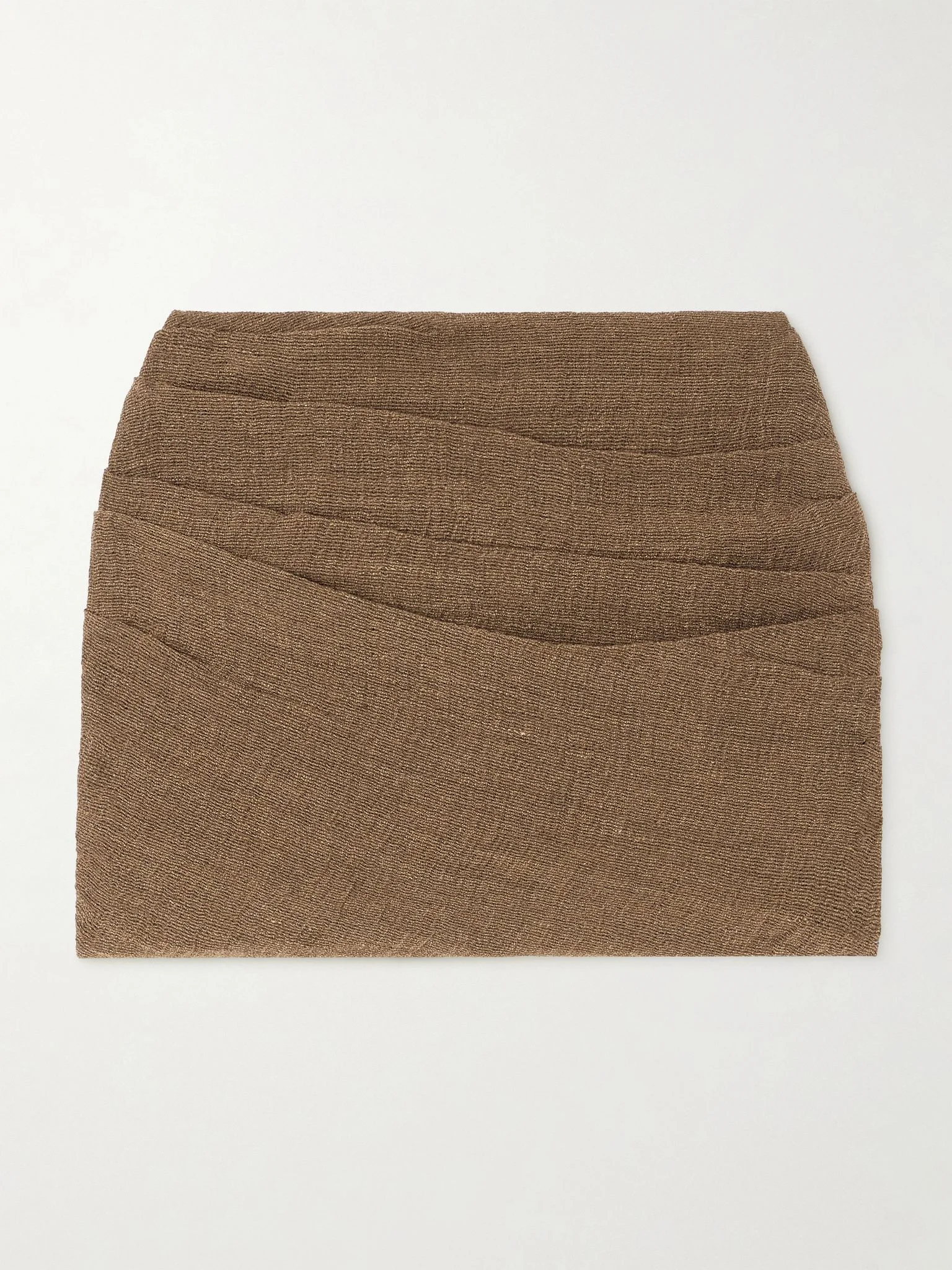 Le Kasha's 'Spetses' mini skirt has been made in France from breathable organic linen-gauze that's draped to create soft, subtle texture. It's double lined to temper the semi-sheer finish and sits high on the hips. Wear yours with the matching top in our edit for vacation or plans in the city. Lower-Impact Materials. This product is made using at least 50% lower-impact materials or ingredients. Find out more about our NET SUSTAIN criteria here. Size & Fit - Fits true to size, take your normal size - Mini-length, designed to be worn at the waist - Lightweight, non-stretchy fabric - Model is 177cm/ 5'10" and is wearing a size Small Model measurements: - Bust: 80cm/ 31.5" - Waist: 60cm/ 23.5" - Hip: 89cm/ 35" Details & Care - Brown organic linen-gauze - Zip fastening along side - 100% organic linen - Machine wash - Designer color: Tabac
