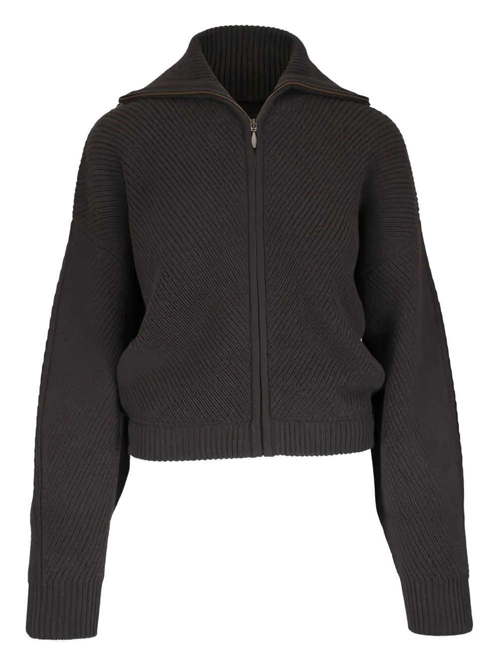 zip-up spread-collar cardigan Highlights - Brown - Zip fastening - Long sleeves - Cropped design Made in United States Composition Fabric 100% Washing instructions Read Manufacturer Guidelines
