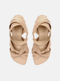 Antonia Pump, handcrafted in supple fawn leather with an ankle strap, cushioned calf leather insole and 80mm heel. Made in Italy.
