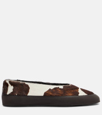 London-based brand Le Monde Beryl delivers modern interpretations of classic shoe styles. Crafted from cow-print calf hair, the Apres Ski ballet flats feature plush shearling linings. Product Details - Upper: calf hair - Lining: shearling - Sole: shearling insole, rubber sole - Toe shape: round toe - Made in Italy - Includes: shoe box, dust bag - Designer color name: Cow - Item color: white, brown - Item number: P01119906 Size & Fit - True to size - European sizes - 2,5cm-1" platform (size EU 38)