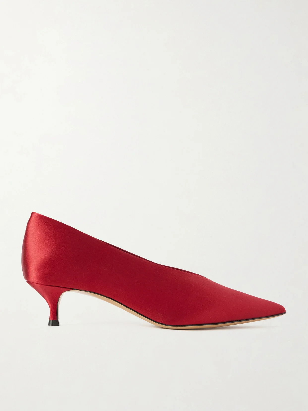 EXCLUSIVE AT NET-A-PORTER. Designed exclusively for us, Le Monde Beryl's 'Babouche' pumps have been made in Italy from satin and come in a bold red shade that you could match your lipstick to. They have elegant pointed toes and rest on sleek kitten heels that offer 40mm of comfortable lift. The V-shaped vamps create the illusion of longer legs.